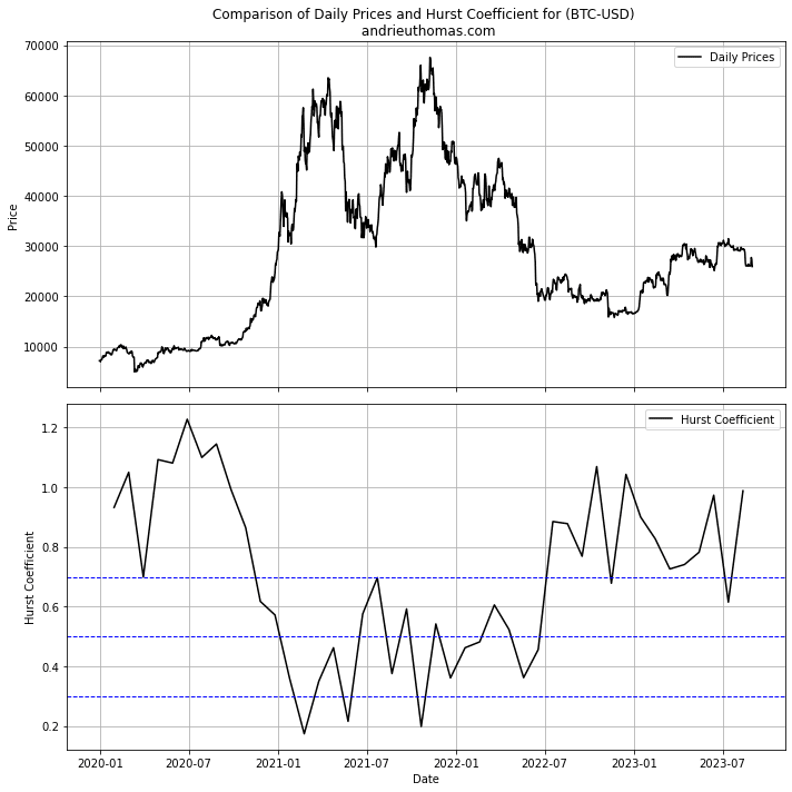 But it is clear that to see a sustainable rebound in bitcoin, bitcoin volatility would need to increase by the end of 2023. Fractals also show that the general weakness in volatility. A return of volatility on a daily basis would confirm the market recovery. Thus, the value of the Hurst coefficient on bitcoin remains high (close to 1). This suggests, barring a more lasting bearish market resumption, the possible persistence of major supports.
