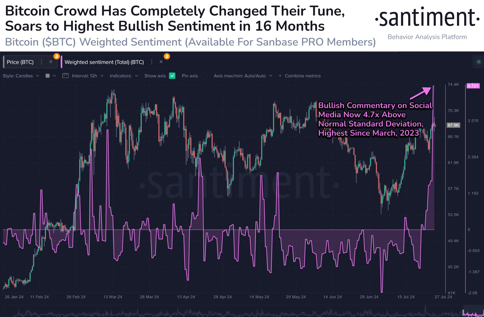 ” Bitcoin's positive comment ratio is at its highest level since March 2023, and all-time highs are once again in sight. »