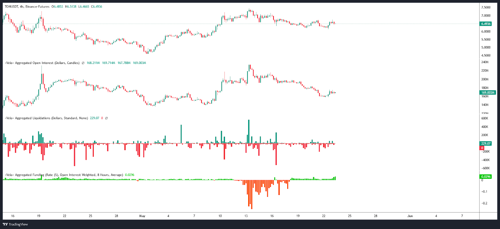 Open Interest / Liquidations & Funding rate TON/USDT