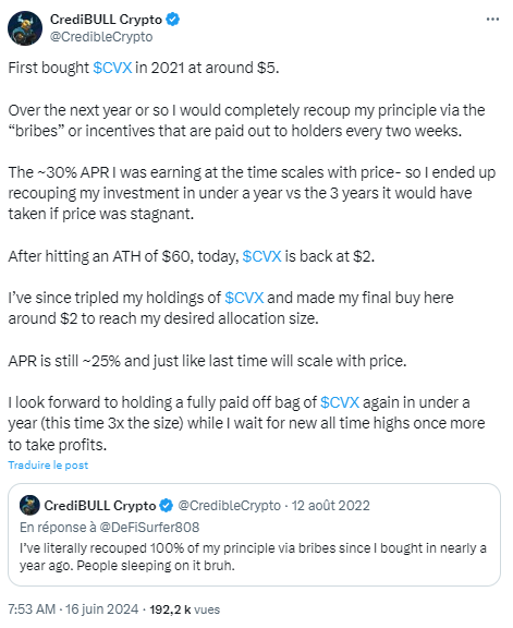 The publication behind this surge in the CVX – Source: CrediBULL Crypto (X)