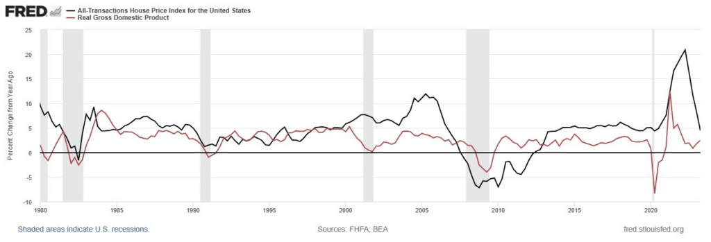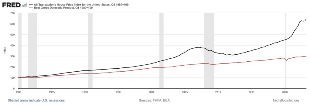 In general, real estate is a leading indicator of the economy. According to the adage, “when real estate goes, everything goes”. Indeed, we notice a sufficient correlation between the variation in GDP (of all income) and the variation in real estate prices. In a stable economy, where the demand for housing responds to the growth of the economy, the growth rate of real estate prices must be close to the increase in agents’ income. Therefore, the purchasing power conferred by real estate is constant and it allows the successful realization of economic needs.