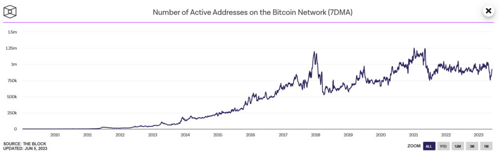 The stagnation in the number of active addresses