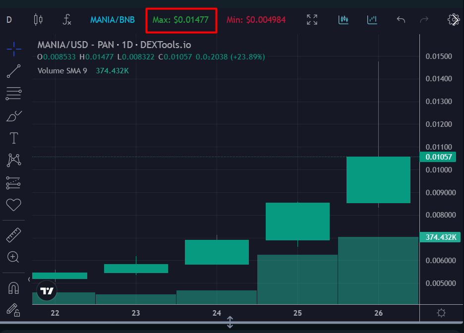 In less than three weeks, the token reached its all-time high price of $0.01477, marking an extraordinary increase of 147.77%.