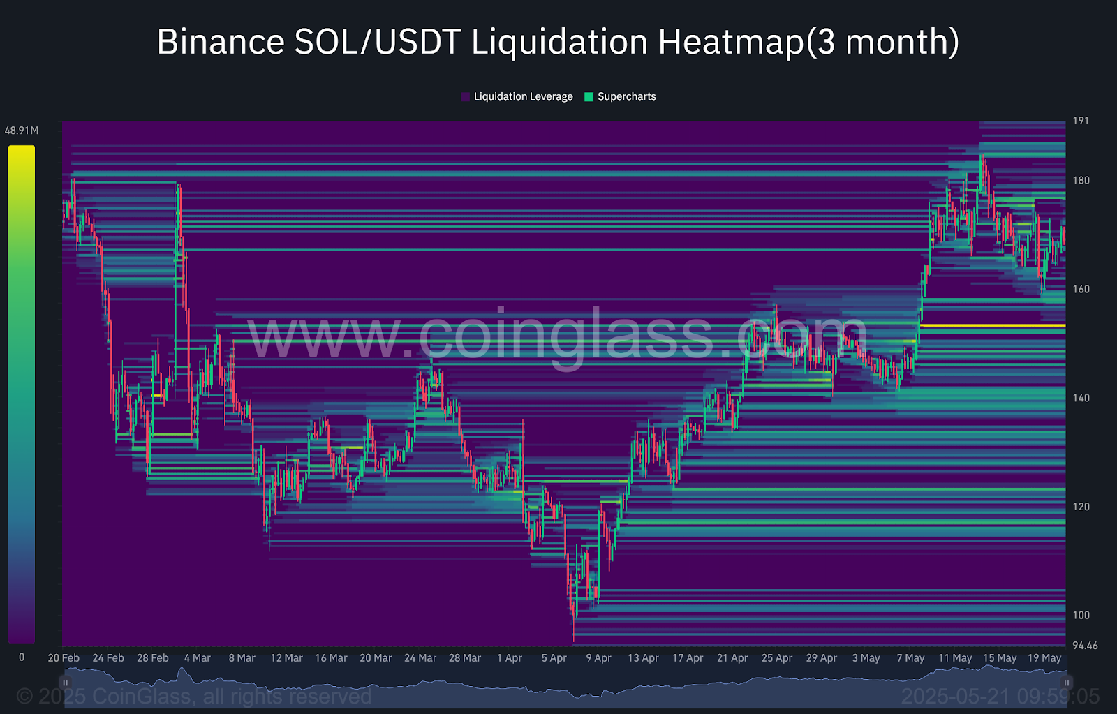 Selling liquidation zones are located at $ 176 $ 182, $ 185 and $ 187, and buying liquidation zones at $ 160 $ 1,156, $ 153.5 $ 151, $ 150 $ $ 146 and $ 141 $ 1. These areas concentrate orders and their crossing could result in acceleration of volatility, with more marked pressure on the buyer side given the greatest number of identified levels.
